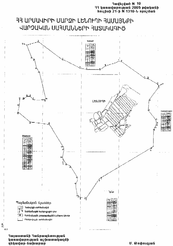 10) Լենուղի գյուղական համայնքի վարչական սահմանների նկարագիրը` համաձայն NN 10 և 101 հավելվածների,