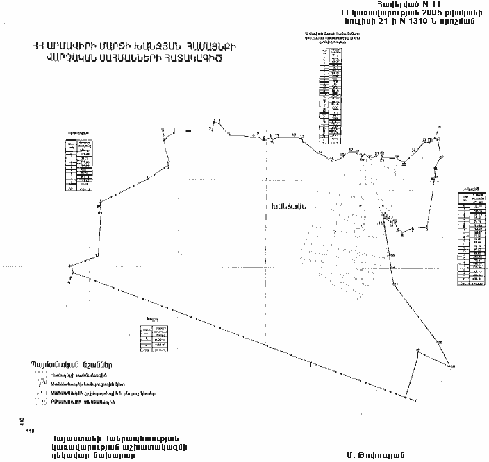 11) Խանջյանի գյուղական համայնքի վարչական սահմանների նկարագիրը` համաձայն NN 11 և 111 հավելվածների,