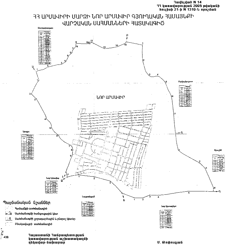 14) Նոր Արմավիրի գյուղական համայնքի վարչական սահմանների նկարագիրը` համաձայն NN 14 և 141 հավելվածների,