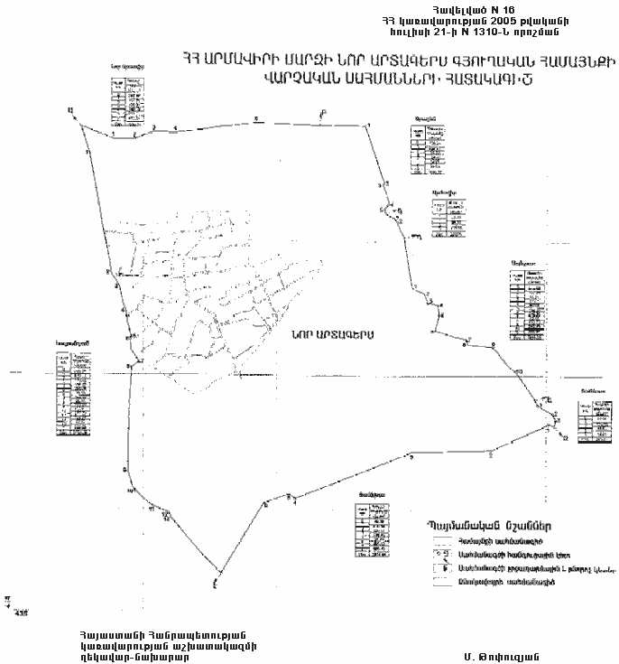 16) Նոր Արտագեսի գյուղական համայնքի վարչական սահմանների նկարագիրը` համաձայն NN 16 և 161 հավելվածների,