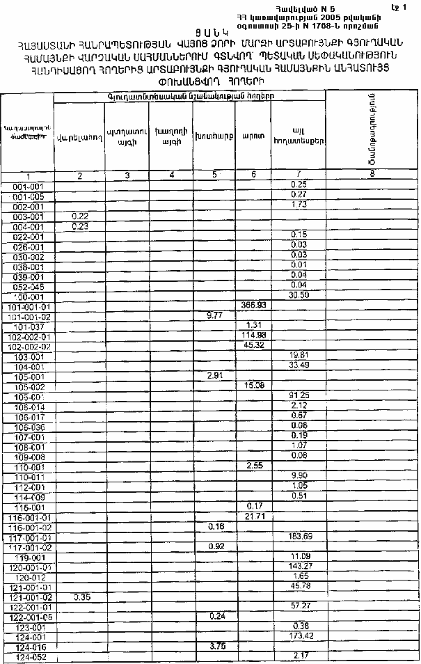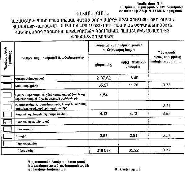 25 օգոստոսի 2005 թվականի N 1768-Ն