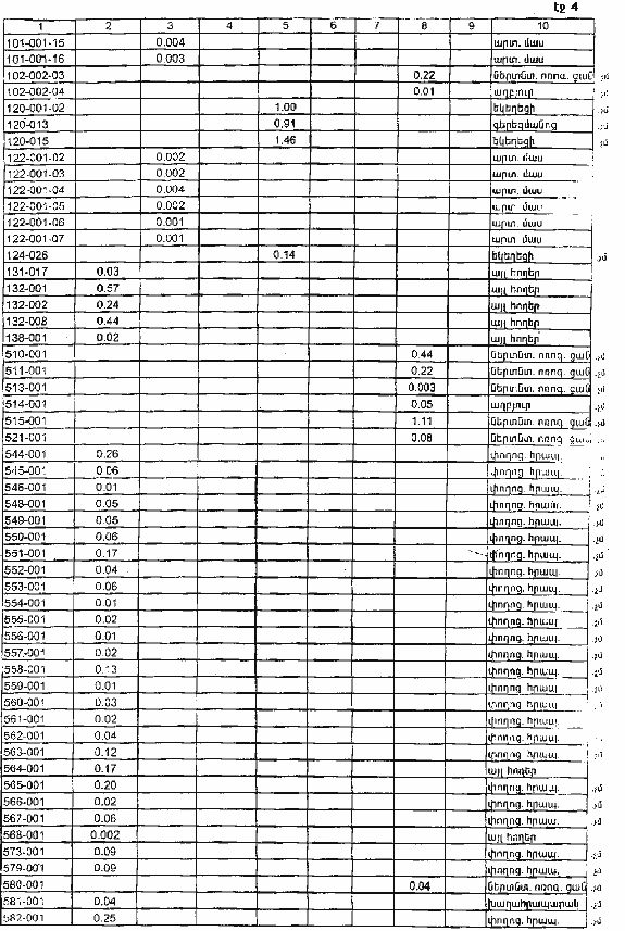 4. Ընդունել ի գիտություն Հայաստանի Հանրապետության Վայոց ձորի մարզի Արտաբույնքի գյուղական համայնքի հողային ֆոնդի առկայության և բաշխման մասին հաշվետվությունը՝ 2005 թվականի հունվարի 1-ի դրությամբ՝ համաձայն NN 8 և 9 հավելվածների: