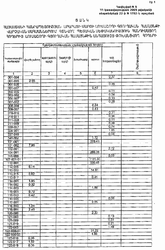 ՀԱՅԱՍՏԱՆԻ ՀԱՆՐԱՊԵՏՈՒԹՅԱՆ ԱՐԱՐԱՏԻ ՄԱՐԶԻ ԼՈՒՍԱՇՈՂԻ ԳՅՈՒՂԱԿԱՆ ՀԱՄԱՅՆՔԻ ՎԱՐՉԱԿԱՆ ՍԱՀՄԱՆՆԵՐՈՒՄ ԳՏՆՎՈՂ` ՊԵՏԱԿԱՆ ՍԵՓԱԿԱՆՈՒԹՅՈՒՆ ՀԱՆԴԻՍԱՑՈՂ ՀՈՂԵՐԻՑ ԼՈՒՍԱՇՈՂԻ ԳՅՈՒՂԱԿԱՆ ՀԱՄԱՅՆՔԻՆ ԱՆՀԱՏՈՒՅՑ ՓՈԽԱՆՑՎՈՂ ՀՈՂԵՐԻ