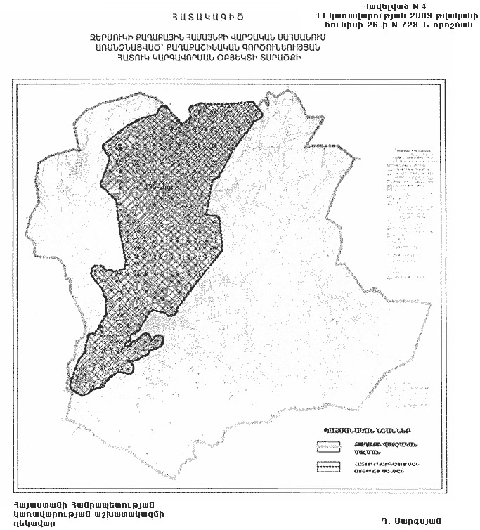 Ջերմուկի քաղաքային համայնքի վարչական սահմանում առանձնացՎԱԾ` քաղաքաշինական գործունեության հատուկ կարգավորման օբյեկտի տարածքԻ