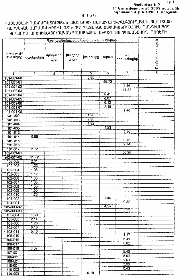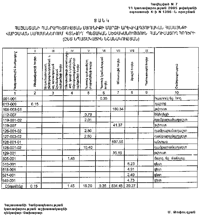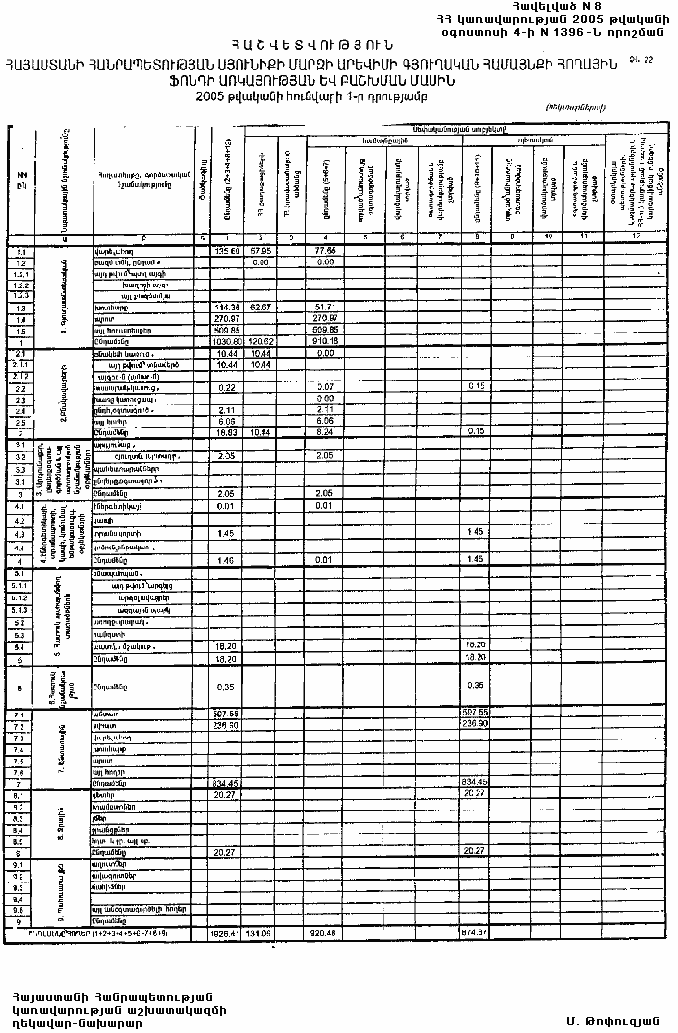 4 օգոստոսի 2005 թվականի N 1396-Ն