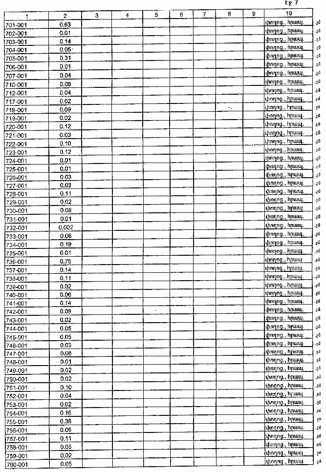 7. Հայաստանի Հանրապետության Տավուշի մարզպետին` Հայաստանի Հանրապետության կառավարության 2000 թվականի հոկտեմբերի 23-ի N 656 որոշմամբ սահմանված կարգով` սկզբնական հաշվառման տվյալների հիման վրա ապահովել մարզի տարածքում ընթացիկ հաշվառման աշխատանքների իրականացումը: