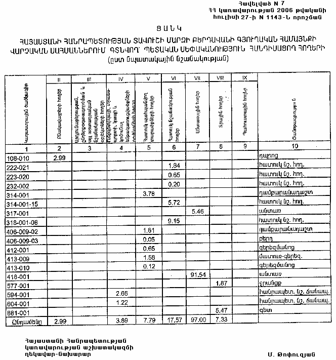 27 հուլիսի 2006 թվականի N 1143-Ն
