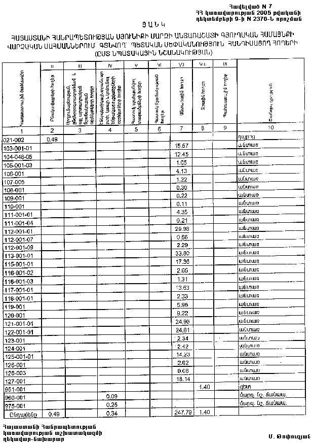 9 դեկտեմբերի 2005 թվականի N 2376-Ն