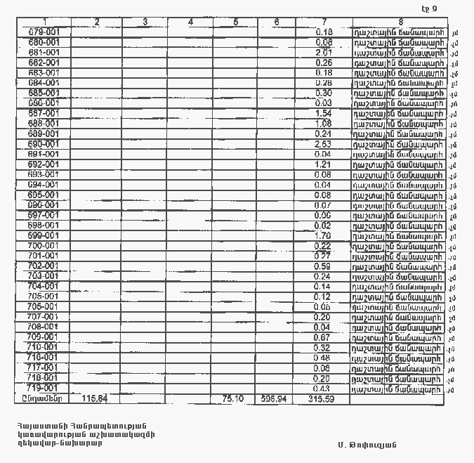 6. Թույլատրել Հայաստանի Հանրապետության կառավարությանն առընթեր անշարժ գույքի կադաստրի պետական կոմիտեի նախագահին Հայաստանի Հանրապետության պետական գեոդեզիական ցանցի հավասարակշռման արդյունքների հիման վրա Հայաստանի Հանրապետության վարչատարածքային միավորների սահմանանիշերի կոորդինատների ժողովածուի հրատարակումից հետո հողային ֆոնդի ընթացիկ հաշվառման ժամանակ Հայաստանի Հանրապետության Լոռու մարզի Դսեղի գյուղական համայնքի հողային հաշվեկշռում սահմանված կարգով կատարել համապատասխան փոփոխություններ: