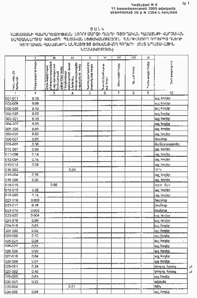 29 դեկտեմբերի 2005 թվականի N 2394-Ն