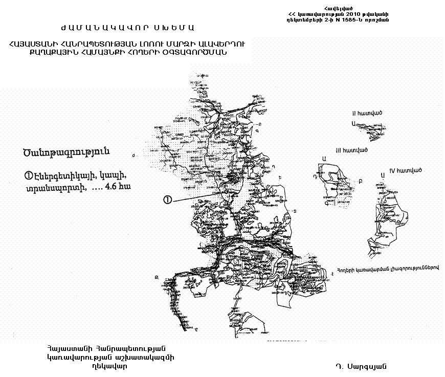 1. Հիմք ընդունելով Հայաստանի Հանրապետության կառավարության 2007 թվականի օգոստոսի 9-ի N 1032-Ն որոշմամբ հաստատված` Հայաստանի Հանրապետության Լոռու մարզի Ալավերդու քաղաքային համայնքի (բնակավայրի) գլխավոր հատակագիծը` համայնքի վարչական սահմաններում գտնվող` պետական սեփականություն հանդիսացող` գյուղատնտեսական նշանակության հողերից 4.6 հեկտարը, այդ թվում` 0.9 հեկտար արոտավայր, 3.7 հեկտար այլ հողատեսք` համաձայն հավելվածի, փոխադրել էներգետիկայի, կապի, տրանսպորտի, կոմունալ ենթակառուցվածքների օբյեկտների հողերի կատեգորիա` Հայաստանի Հանրապետության օրենսդրությամբ սահմանված կարգով աղբավայրի համար: