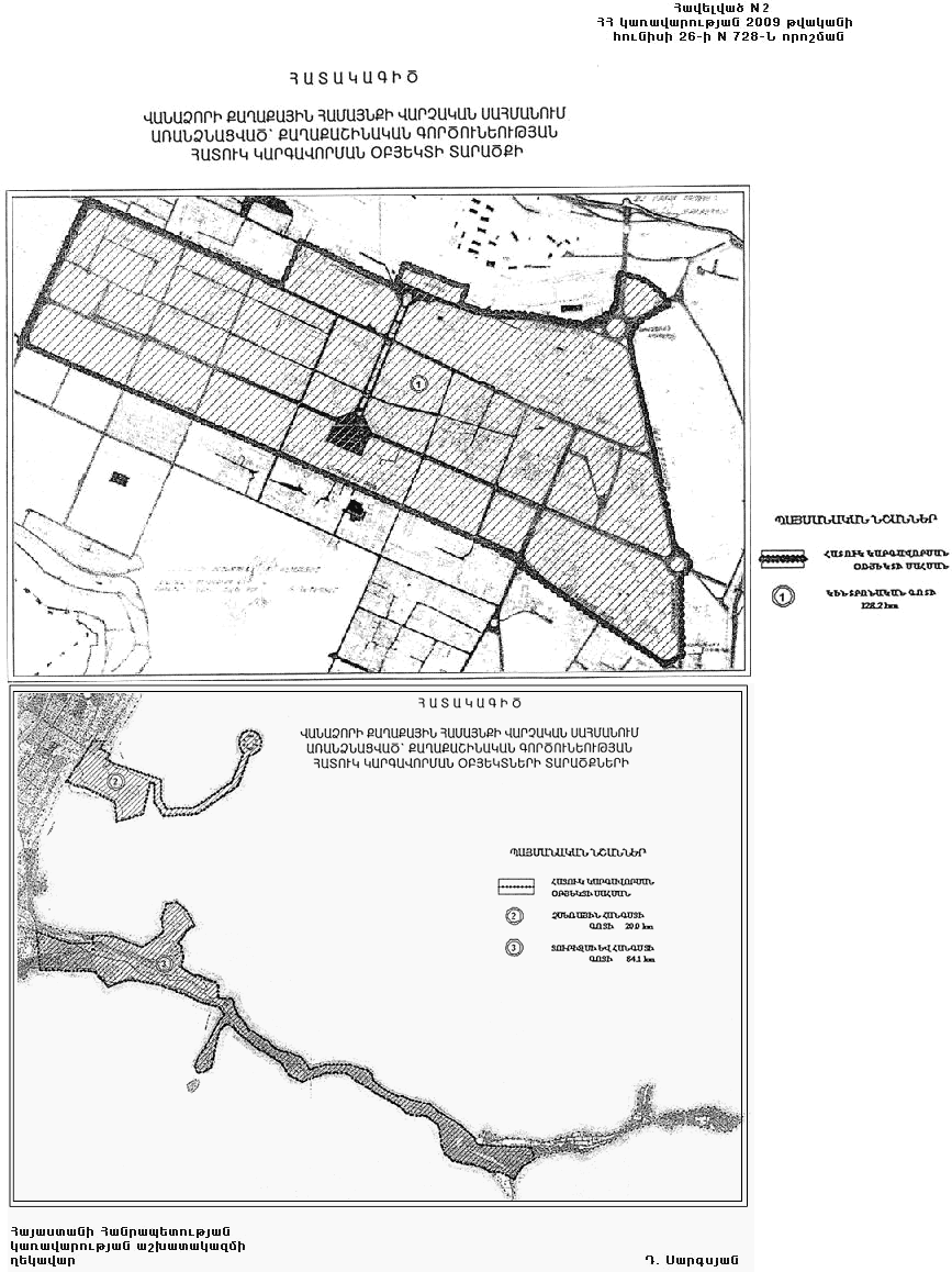 2) Վանաձորի քաղաքային համայնքի վարչական սահմանում առանձնացվող` քաղաքաշինական գործունեության հատուկ կարգավորման օբյեկտների տարածքները՝ համաձայն N 2 հավելվածի.