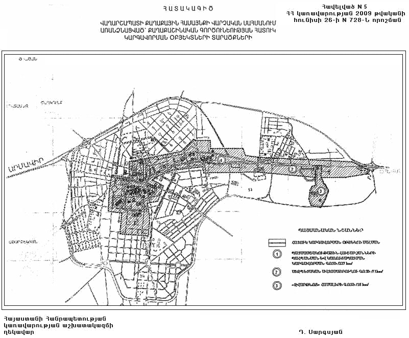Վաղարշապատի քաղաքային համայնքի վարչական սահմանում առանձնացվԱԾ` քաղաքաշինական գործունեության հատուկ կարգավորման օբյեկտների տարածքներԻ