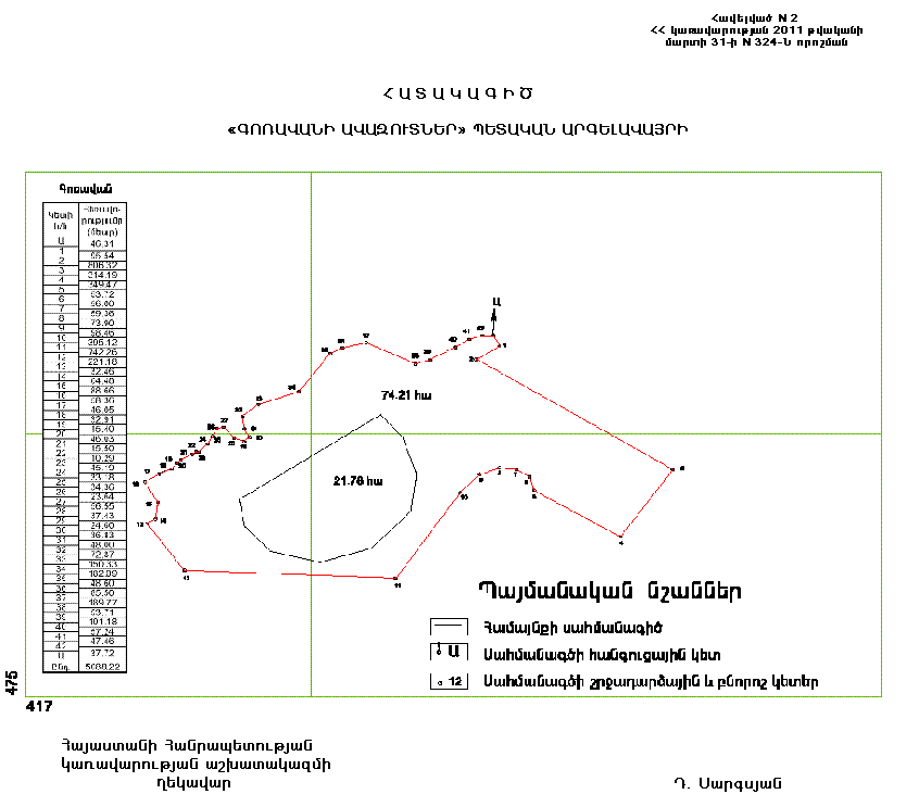 «ԳՈՌԱՎԱՆԻ ԱՎԱԶՈՒՏՆԵՐ» ՊԵՏԱԿԱՆ ԱՐԳԵԼԱՎԱՅՐԻ ՍԱՀՄԱՆՆԵՐԻ ՆԿԱՐԱԳԻՐԸ ԵՎ ՀԱՏԱԿԱԳԻԾԸ ՀԱՍՏԱՏԵԼՈՒ ՄԱՍԻՆ