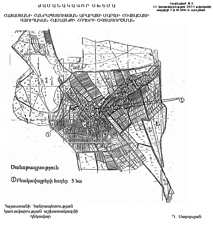 2. Հայաստանի Հանրապետության կառավարության 2005 թվականի սեպտեմբերի 28-ի «Հայաստանի Հանրապետության Արմավիրի մարզի Փարաքարի գյուղական համայնքի հողերի օգտագործման ժամանակավոր սխեման հաստատելու մասին» N 1632-Ն որոշման մեջ կատարել հետևյալ փոփոխությունները`