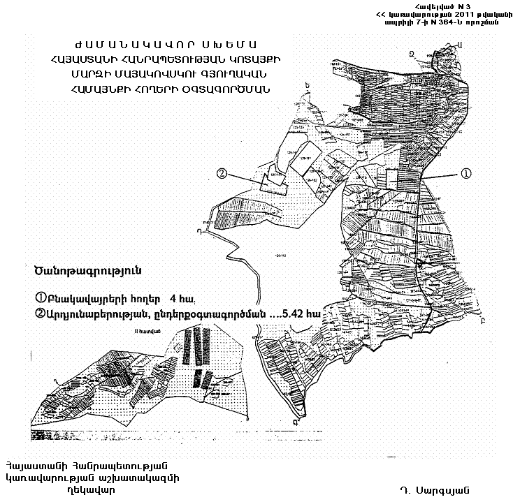 4. Հայաստանի Հանրապետության կառավարության 2008 թվականի ապրիլի 10-ի «Հայաստանի Հանրապետության Կոտայքի մարզի Մայակովսկու գյուղական համայնքի հողերի օգտագործման ժամանակավոր սխեման հաստատելու մասին» N 379-Ն որոշման մեջ կատարել հետևյալ փոփոխությունները`