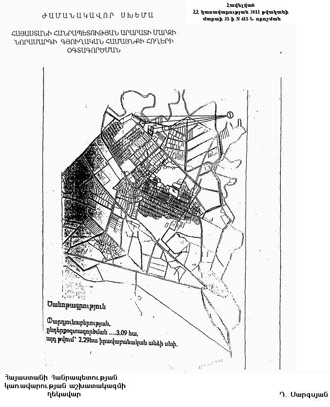 1. Հայաստանի Հանրապետության կառավարության 2007 թվականի հունվարի 18-ի N 35-Ն որոշմամբ հաստատված` Հայաստանի Հանրապետության Արարատի մարզի Նորամարգի գյուղական համայնքի հողերի օգտագործման ժամանակավոր սխեմայում` համաձայն հավելվածի, համայնքի վարչական սահմաններում գտնվող 3.09 հեկտար գյուղատնտեսական նշանակության վարելահողերը փոխադրել արդյունաբերության, ընդերքօգտագործման և այլ արտադրական նշանակության օբյեկտների հողերի կատեգորիա` Հայաստանի Հանրապետության օրենսդրությամբ սահմանված կարգով ավազի արդյունահանման համար, այդ թվում` 0.8 հեկտարը` համայնքային, 2.29 հեկտարը` իրավաբանական անձի սեփականություն հանդիսացող:
