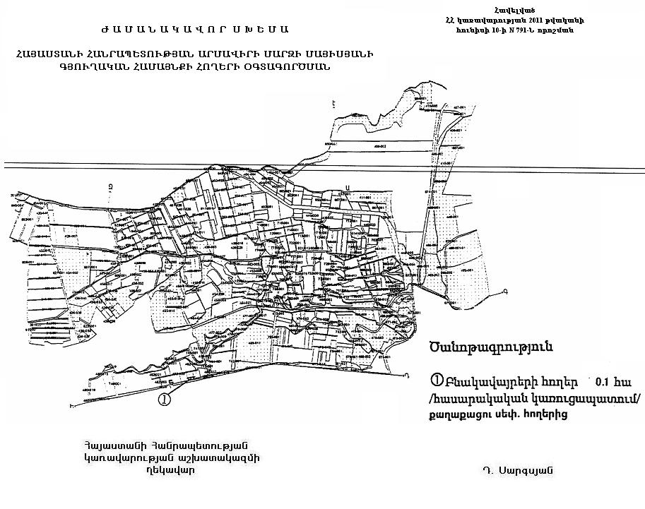 2) սույն կետի 1-ին ենթակետով գանձված ֆինանսական միջոցներն ուղղել համայնքի հողերի գոտևորման և օգտագործման սխեմայի կամ գլխավոր հատակագծի կազմմանը: