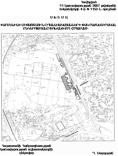 1. Հայաստանի Հանրապետության կառավարության 2007 թվականի հոկտեմբերի 4-ի «Արմենիա» միջազգային օդանավակայաններ» փակ բաժնետիրական ընկերությանն անհատույց օգտագործման իրավունքով հողամաս տրամադրելու մասին» N 1153-Ն որոշման մեջ կատարել հետևյալ փոփոխությունները՝