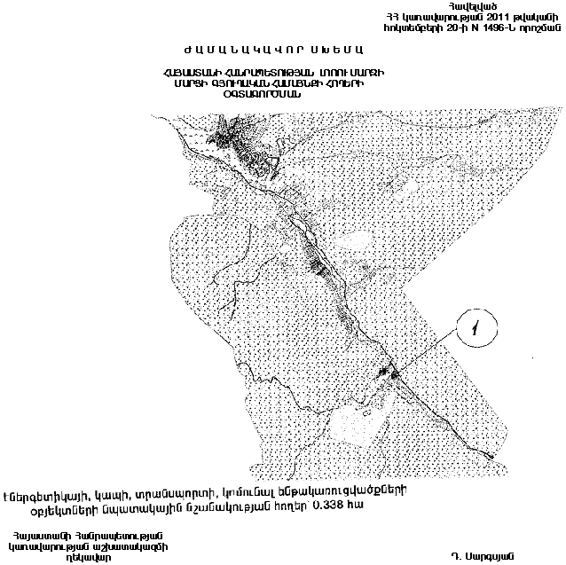 1. Հայաստանի Հանրապետության կառավարության 2002 թվականի սեպտեմբերի 19-ի N 1502-Ն որոշմամբ հաստատված` Հայաստանի Հանրապետության Լոռու մարզի Մարցի գյուղական համայնքի հողերի օգտագործման ժամանակավոր սխեմայում` համաձայն հավելվածի, իրավաբանական անձի սեփականությունը հանդիսացող՝ բնակավայրերի բնակելի կառուցապատման հողերից 0.338 հեկտարը փոխադրել էներգետիկայի, կապի, տրանսպորտի, կոմունալ ենթակառուցվածքների օբյեկտների հողերի կատեգորիա` Հայաստանի Հանրապետության օրենսդրությամբ սահմանված կարգով փոքր հիդրոէլեկտրակայանի կառուցման համար:
