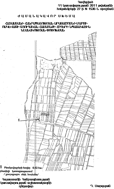 1. Հայաստանի Հանրապետության կառավարության 2002 թվականի սեպտեմբերի 12-ի N 1455-Ն որոշմամբ հաստատված` Հայաստանի Հանրապետության Արագածոտնի մարզի Ոսկեվազի գյուղական համայնքի հողերի օգտագործման ժամանակավոր սխեմայում` համաձայն հավելվածի, քաղաքացու սեփականությունը հանդիսացող` գյուղատնտեսական նշանակության վարելահողերից 0.02 հեկտարը փոխադրել բնակավայրերի հողերի կատեգորիա` Հայաստանի Հանրապետության օրենսդրությամբ սահմանված կարգով բնակելի կառուցապատման համար: