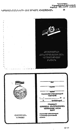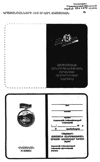 (որոշումն ուժը կորցրել է, բացառությամբ որոշման 1-ին կետով սահմանված կրծքանշանների ձևը հաստատելու մասի` համաձայն 10.02.05 N 152-Ն որոշման 3-րդ կետի)