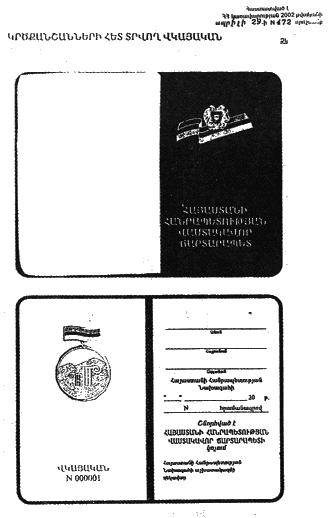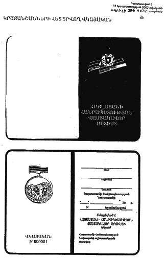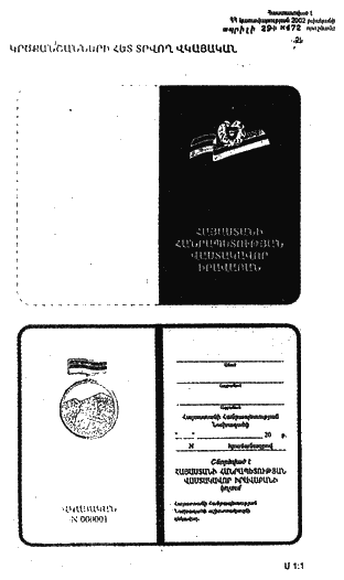 Հայաստանի Հանրապետության պատվավոր կոչմանն արժանացած անձանց պատվոգրերի, կրծքանշանների, ինչպես նաև պատվավոր կոչումները հավաստող վկայականների ձևերը (կցվում են):