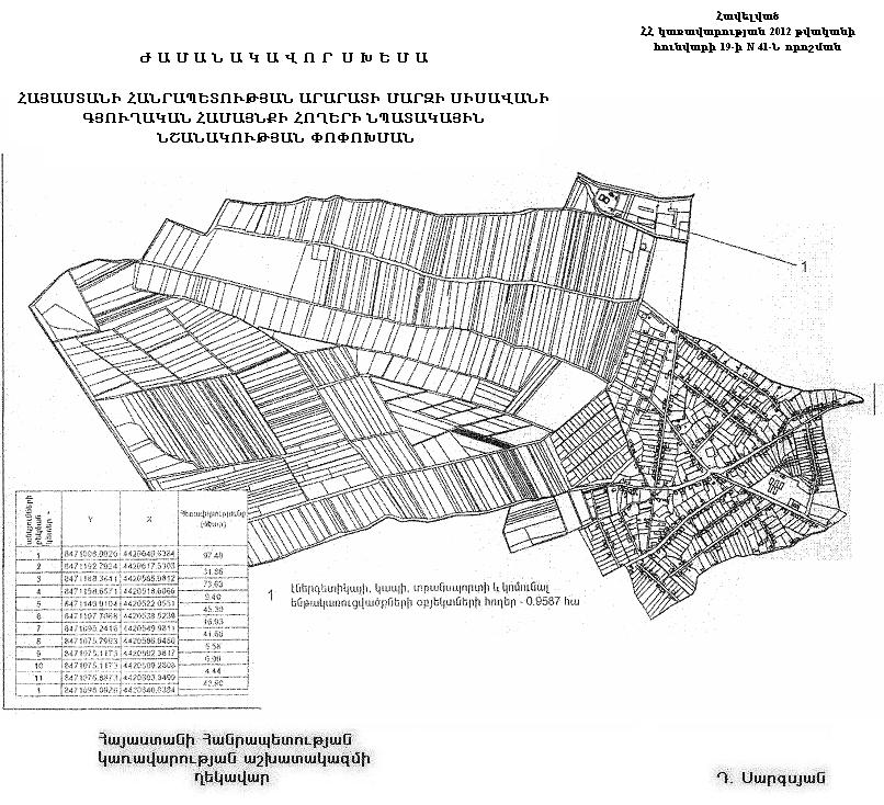 ՀԱՅԱՍՏԱՆԻ ՀԱՆՐԱՊԵՏՈՒԹՅԱՆ ԱՐԱՐԱՏԻ ՄԱՐԶԻ ՍԻՍԱՎԱՆԻ ԳՅՈՒՂԱԿԱՆ ՀԱՄԱՅՆՔԻ ՀՈՂԵՐԻ ՆՊԱՏԱԿԱՅԻՆ ՆՇԱՆԱԿՈՒԹՅԱՆ ՓՈՓՈԽՄԱՆ