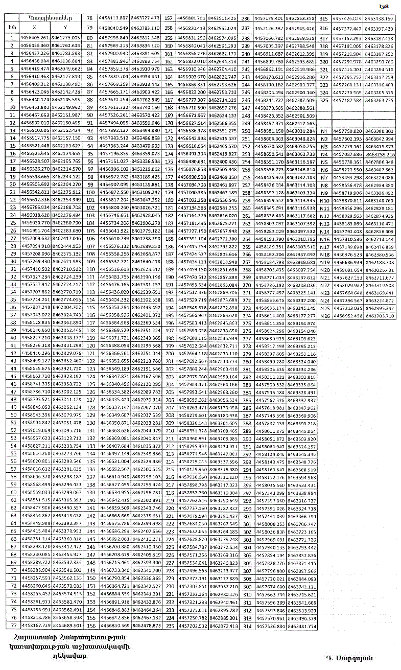 3. Հայաստանի Հանրապետության էներգետիկայի և բնական պաշարների նախարարին՝ երկամսյա ժամկետում գույքագրել համայնքի վարչական տարածքում գազի ստորգետնյա պահեստարանների (ներառյալ գազատարներն ու այլ տեղակայանքները) անվտանգության գոտիներում առկա հողամասերը, շենքերն ու շինությունները և ներկայացնել առաջարկություն դրանց հետագա կարգավիճակի վերաբերյալ: