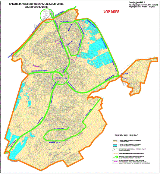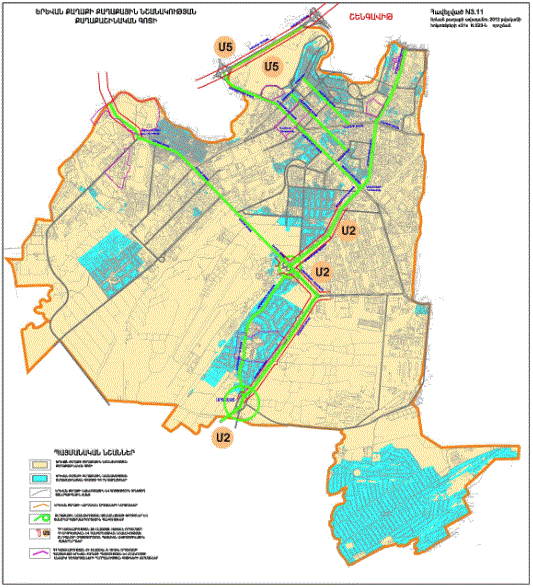 2) Երևան քաղաքի քաղաքային նշանակության քաղաքաշինական գոտին (քարտեզի տեսքով)` համաձայն N 2 հավելվածի: