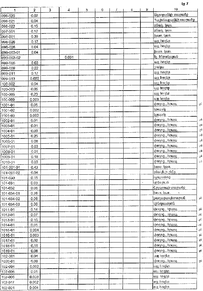 7. Հայաստանի Հանրապետության Տավուշի մարզպետին՝ Հայաստանի Հանրապետության կառավարության 2000 թվականի հոկտեմբերի 23-ի N 656 որոշմամբ սահմանված կարգով՝ սկզբնական հաշվառման տվյալների հիման վրա ապահովել մարզի տարածքում ընթացիկ հաշվառման աշխատանքների իրականացումը:
