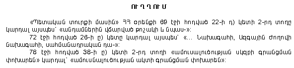 (34-րդ հոդվածը լրաց. 28.12.98 ՀՕ-277, փոփ., լրաց. 14.12.01 ՀՕ-283, խմբ., լրաց. 15.12.05 ՀՕ-11-Ն, լրաց. 26.12.08 ՀՕ-241-Ն, լրաց., փոփ. 26.02.13 ՀՕ-14-Ն, լրաց. 20.11.14 ՀՕ-171-Ն, 13.11.15 ՀՕ-124-Ն)