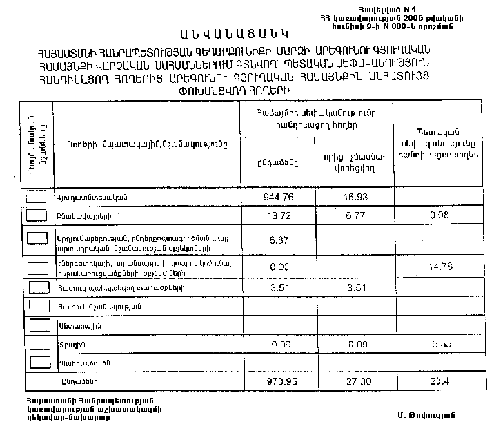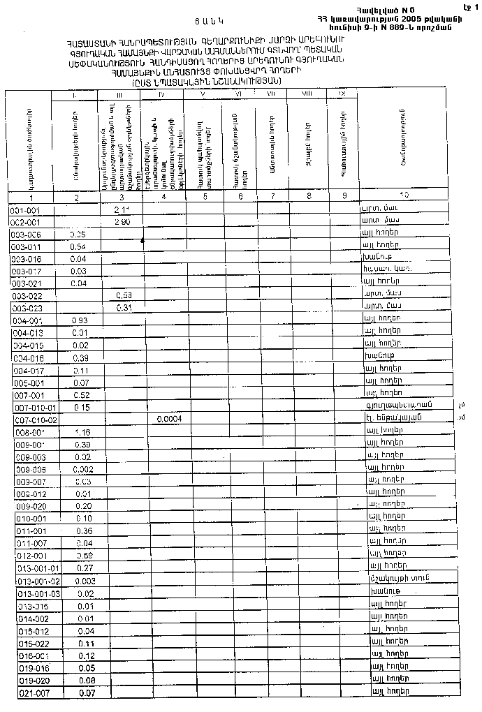 9 հունիսի 2005 թվականի N 889-Ն