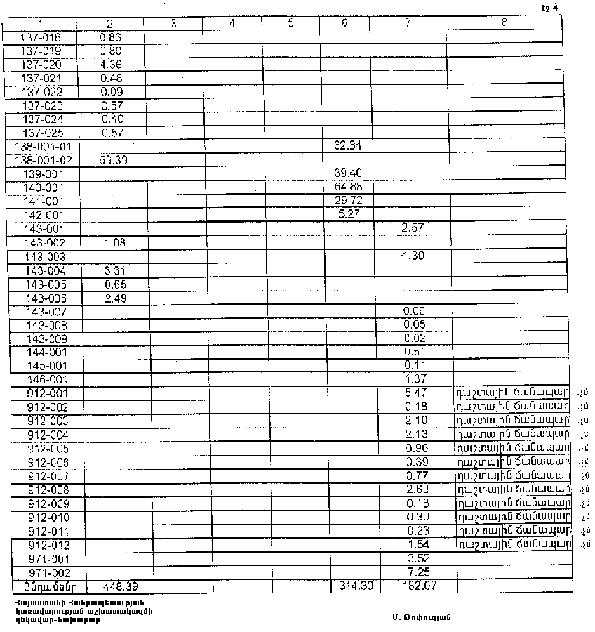 4. Ընդունել ի գիտություն Հայաստանի Հանրապետության Գեղարքունիքի մարզի Արեգունու գյուղական համայնքի հողային ֆոնդի առկայության և բաշխման մասին հաշվետվությունը` 2005 թվականի հունվարի 1-ի դրությամբ` համաձայն NN 8 և 9 հավելվածների: