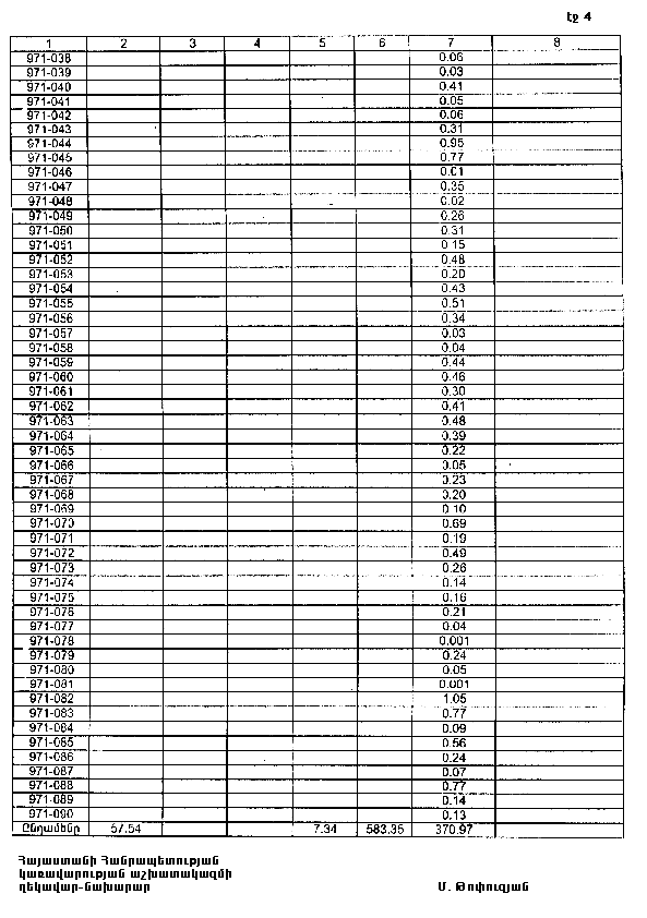 7. Հայաստանի Հանրապետության Սյունիքի մարզպետին՝ Հայաստանի Հանրապետության կառավարության 2000 թվականի հոկտեմբերի 23-ի N 656 որոշմամբ սահմանված կարգով՝ սկզբնական հաշվառման տվյալների հիման վրա ապահովել մարզի տարածքում ընթացիկ հաշվառման աշխատանքների իրականացումը: