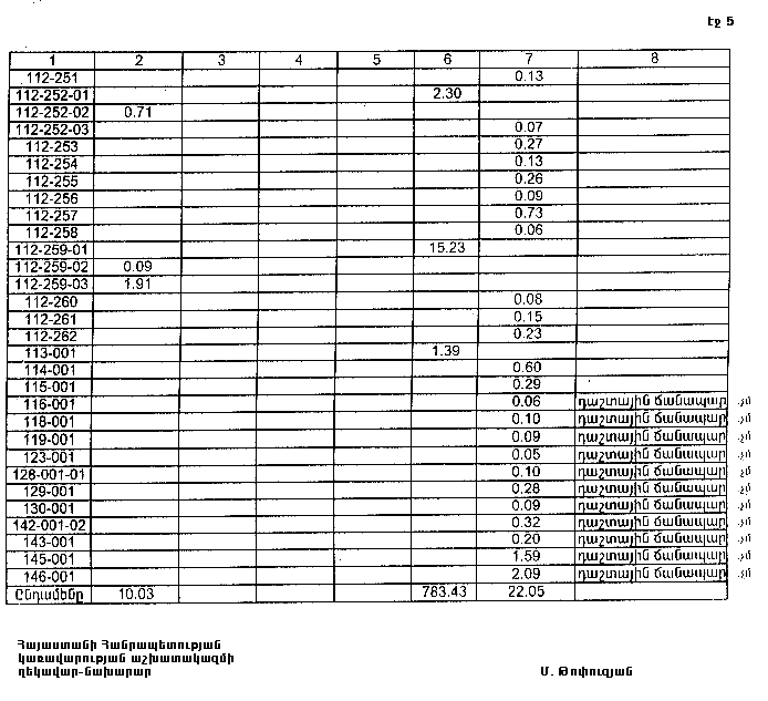 4. Ընդունել ի գիտություն Հայաստանի Հանրապետության Գեղարքունիքի մարզի Նորաշենի գյուղական համայնքի հողային ֆոնդի առկայության և բաշխման մասին հաշվետվությունը՝ 2005 թվականի հունվարի 1-ի դրությամբ՝ համաձայն N 8 հավելվածի: