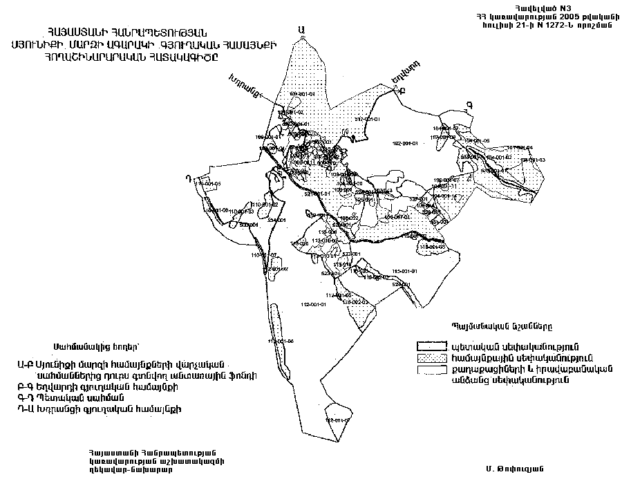 ՀԱՅԱՍՏԱՆԻ ՀԱՆՐԱՊԵՏՈՒԹՅԱՆ ՍՅՈՒՆԻՔԻ ՄԱՐԶԻ ԱԳԱՐԱԿԻ ԳՅՈՒՂԱԿԱՆ ՀԱՄԱՅՆՔԻ ՎԱՐՉԱԿԱՆ ՍԱՀՄԱՆՆԵՐԻ ՆԿԱՐԱԳԻՐԸ ՀԱՍՏԱՏԵԼՈՒ ԵՎ ԱԳԱՐԱԿԻ ԳՅՈՒՂԱԿԱՆ ՀԱՄԱՅՆՔԻ ՎԱՐՉԱԿԱՆ ՍԱՀՄԱՆՆԵՐՈՒՄ ԳՏՆՎՈՂ` ՊԵՏԱԿԱՆ ՍԵՓԱԿԱՆՈՒԹՅՈՒՆ ՀԱՆԴԻՍԱՑՈՂ ՀՈՂԱՄԱՍԵՐՆ ԱՆՀԱՏՈՒՅՑ ՍԵՓԱԿԱՆՈՒԹՅԱՆ ԻՐԱՎՈՒՆՔՈՎ ՀԱՄԱՅՆՔԻՆ ՓՈԽԱՆՑԵԼՈՒ ՄԱՍԻՆ