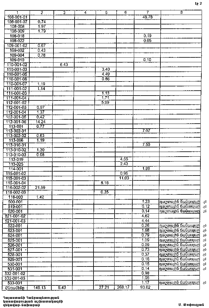 7. Հայաստանի Հանրապետության Սյունիքի մարզպետին՝ Հայաստանի Հանրապետության կառավարության 2000 թվականի հոկտեմբերի 23-ի N 656 որոշմամբ սահմանված կարգով՝ սկզբնական հաշվառման տվյալների հիման վրա ապահովել մարզի տարածքում ընթացիկ հաշվառման աշխատանքների իրականացումը:
