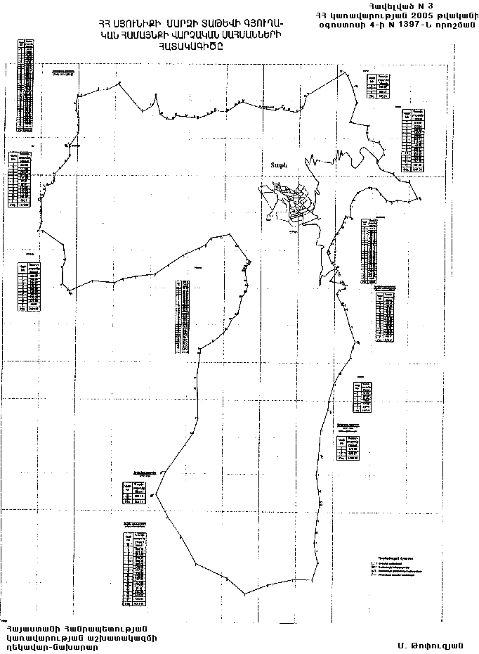 3) Տաթևի գյուղական համայնքի վարչական սահմանների նկարագիրը` համաձայն NN 3 և 31 հավելվածների: