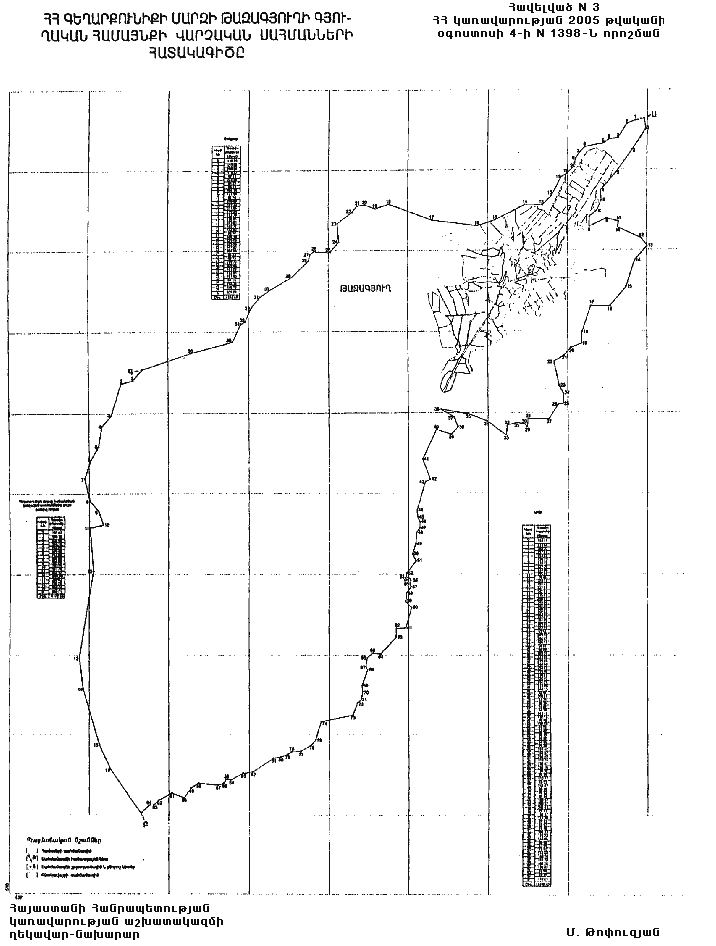 3) Թազագյուղի գյուղական համայնքի վարչական սահմանների նկարագիրը` համաձայն NN 3 և 31 հավելվածների,