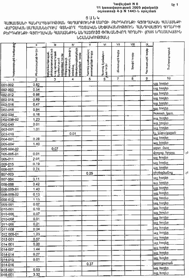 4 օգոստոսի 2005 թվականի N 1443-Ն