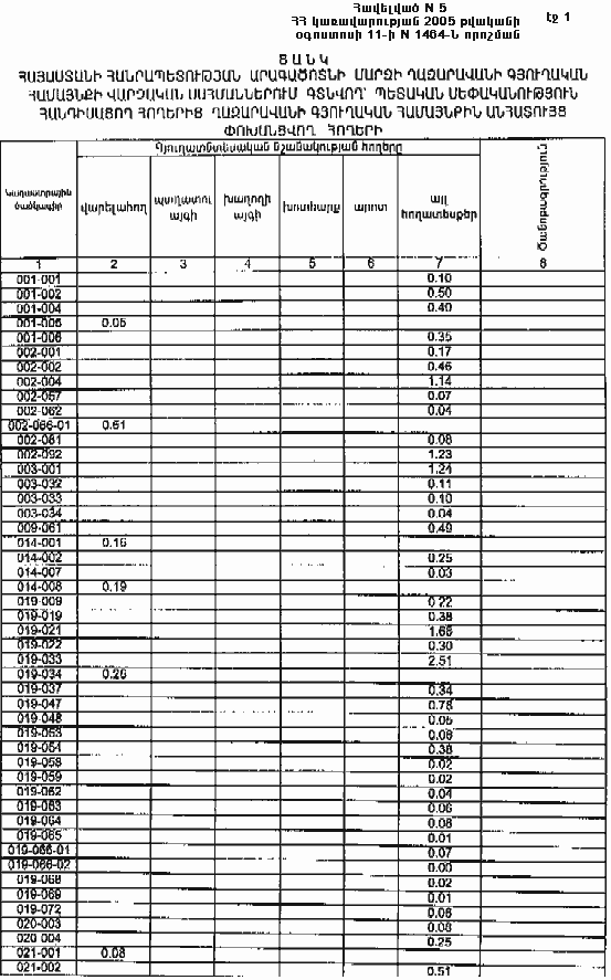 11 օգոստոսի 2005 թվականի N 1464-Ն