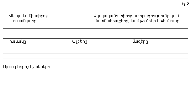 f/ նրա անձնական վկայականի մեջ կամ ճանաչման մեդալիոնի վրա բովանդակված մյուս բոլոր տեղեկությունները,