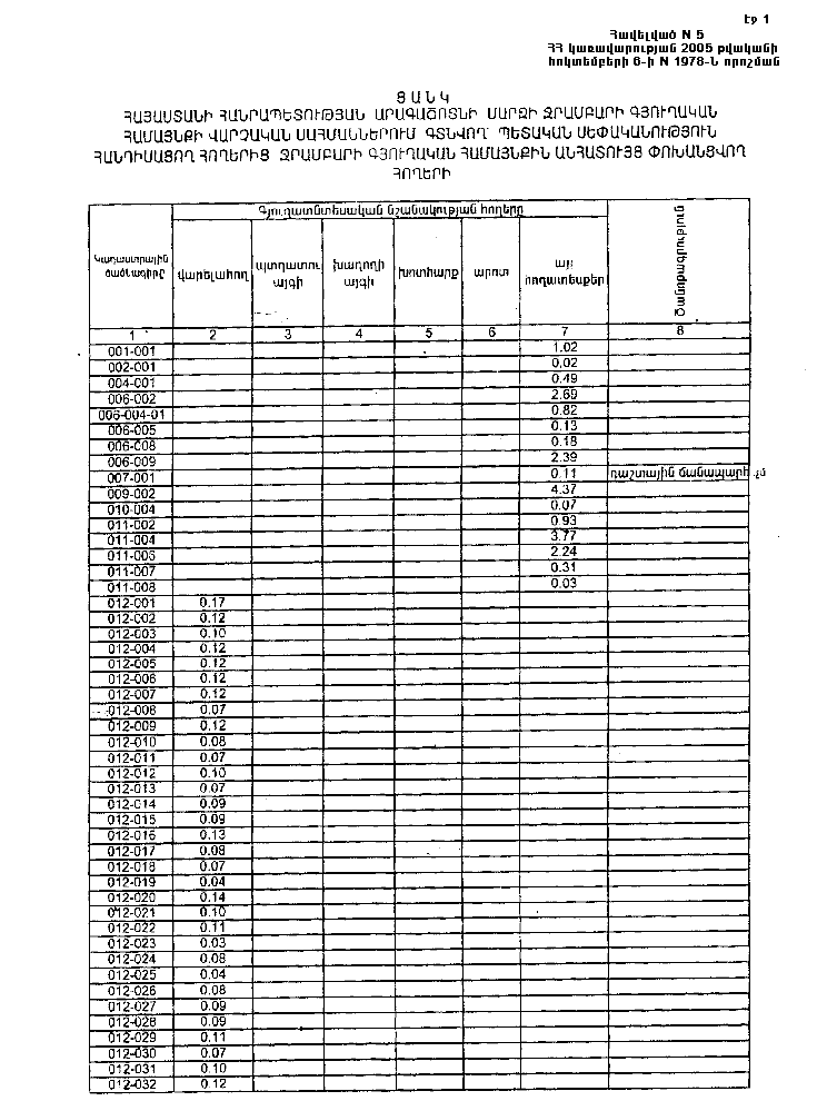 4. Ընդունել ի գիտություն Հայաստանի Հանրապետության Արագածոտնի մարզի Ջրամբարի գյուղական համայնքի հողային ֆոնդի առկայության և բաշխման մասին հաշվետվությունը` 2005 թվականի հունվարի 1-ի դրությամբ` համաձայն N 8 հավելվածի: