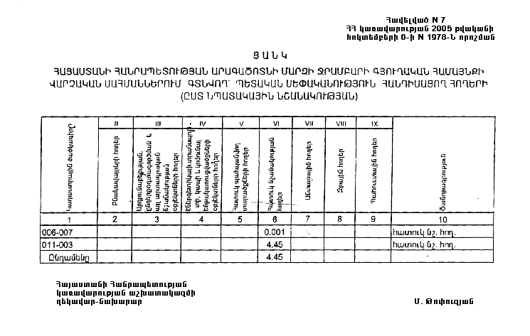 բ) Հայաստանի Հանրապետության Արագածոտնի մարզի Ջրամբարի գյուղական համայնքի վարչական սահմաններում գտնվող հողերից 4.45 հեկտարը համարվում է պետական սեփականություն` համաձայն N 7 հավելվածի: