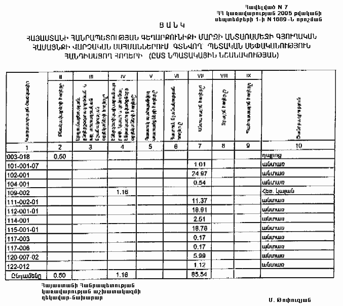 1 սեպտեմբերի 2005 թվականի N 1689-Ն
