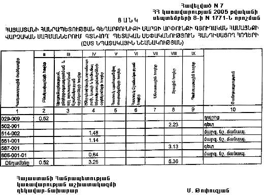 8 սեպտեմբերի 2005 թվականի N 1771-Ն