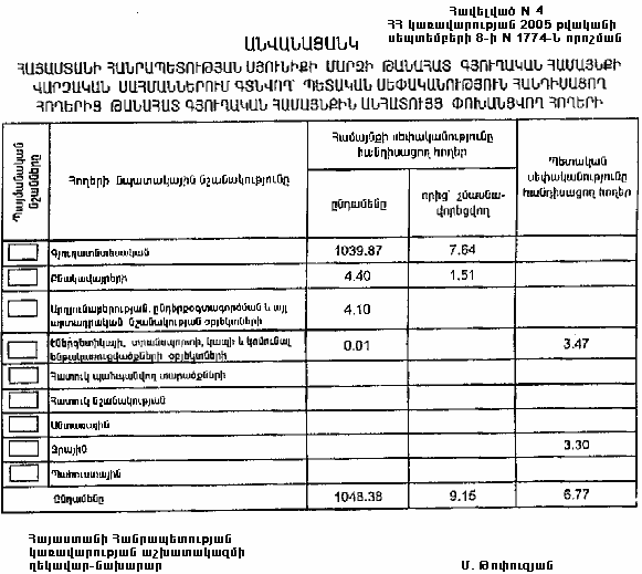 4. Ընդունել ի գիտություն Հայաստանի Հանրապետության Սյունիքի մարզի Թանահատի գյուղական համայնքի հողային ֆոնդի առկայության և բաշխման մասին հաշվետվությունը` 2005 թվականի հունվարի 1-ի դրությամբ` համաձայն NN 8 և 9 հավելվածների: