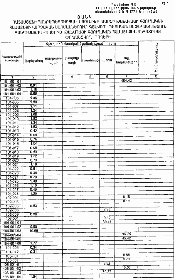 8 սեպտեմբերի 2005 թվականի N 1774-Ն