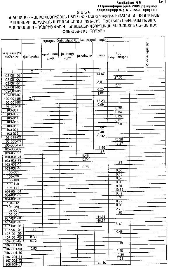 9 դեկտեմբերի 2005 թվականի N 2356-Ն